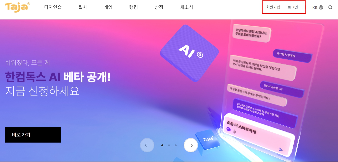 해당 사이트에서는 '회원가입'을 하여 '로그인'을 해야