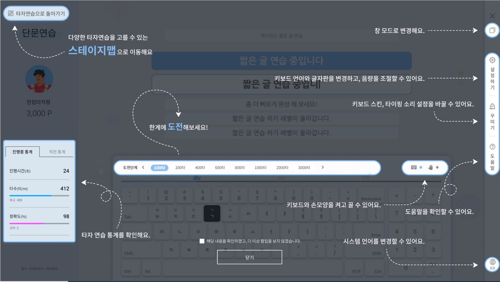 질리지 않게, 즐겁게 타자연습을 하실 수 있습니다.