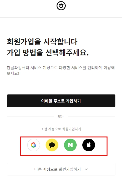 편하신 방법대로 골라서 회원가입 하시면 됩니다.