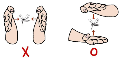일반적으로 사람들은 박수를 치듯이 모기를 잡는다.