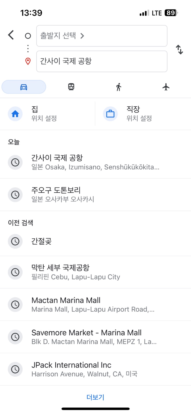 저는 예시로 캡쳐본을 뜬것이기에, 출발지와 도착지를 둘 다 설정을 임의로 해줬는데요,