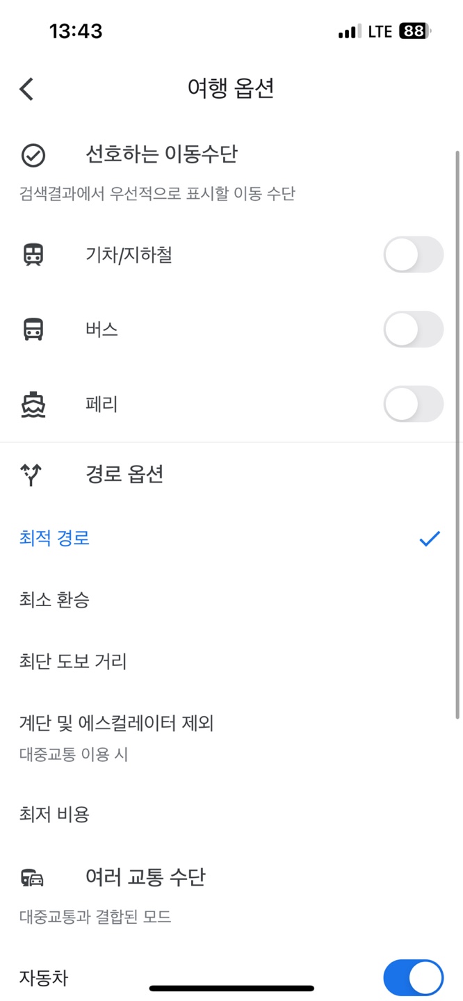 선호하는 이동수단부터 최적의 경로, 최소 환승, 최단보도, 최저비용 등