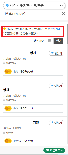 "우리 지역 좋은 병원 찾기"를 누르면 위와 같은 화면이 뜨실 텐데,