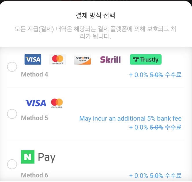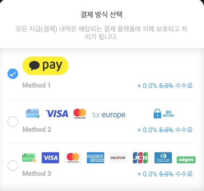 다음은 결제 방식 선택입니다.