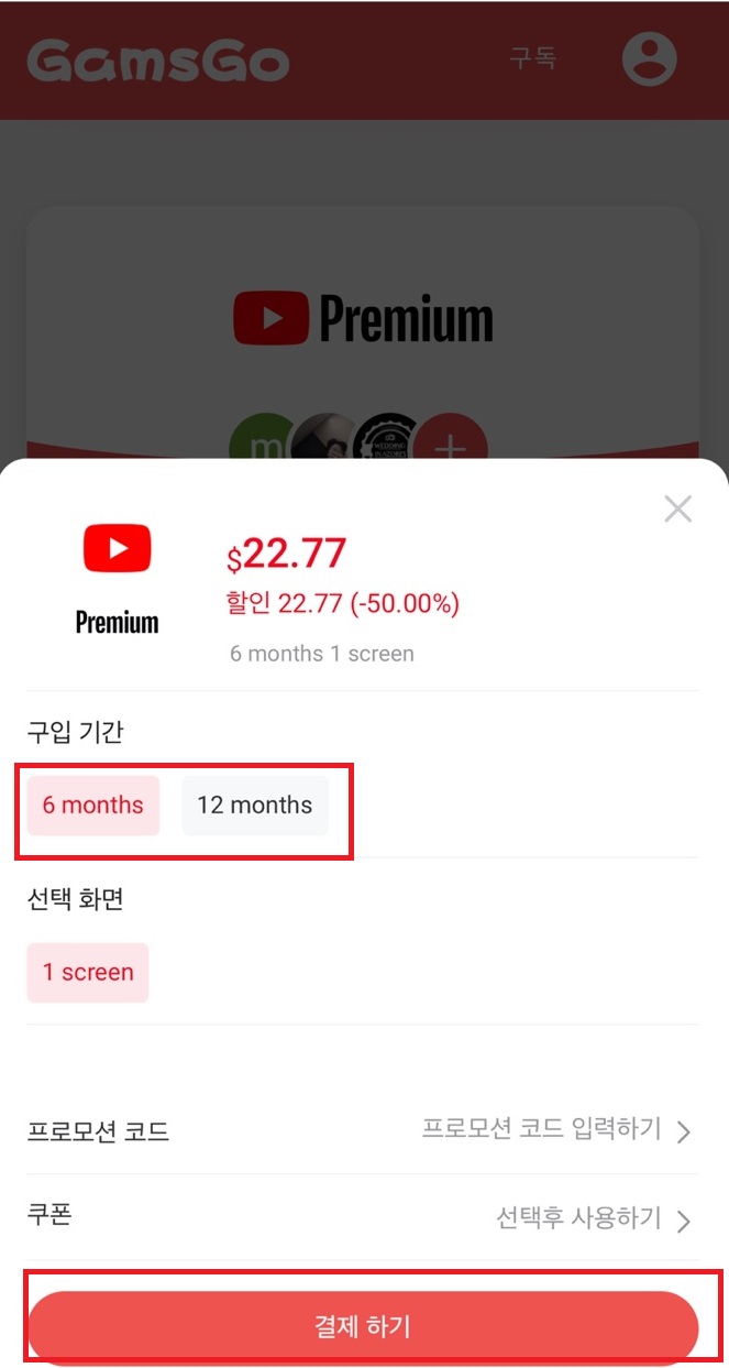 6개월 구독 기준 22.77달러