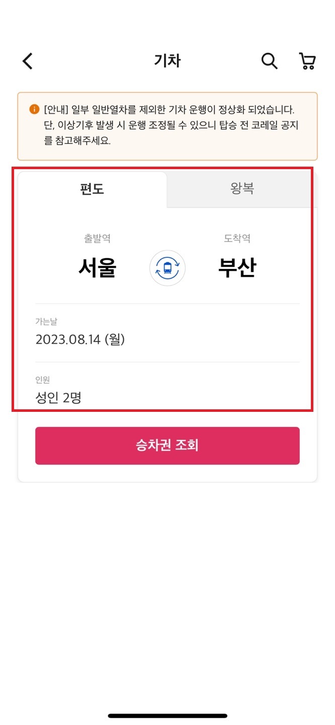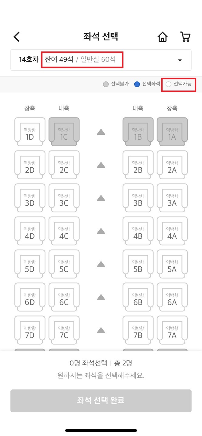 동일한 조건으로 8월 14일,성인2명 14호차를 검색 해보겠습니다.