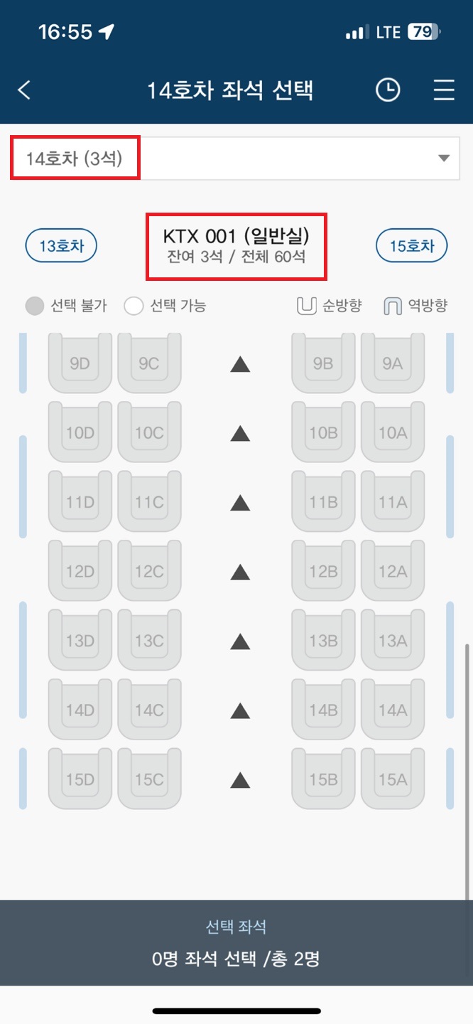 보시다시피 이미 8월14일 14호차의 잔여좌석은 3개 입니다.